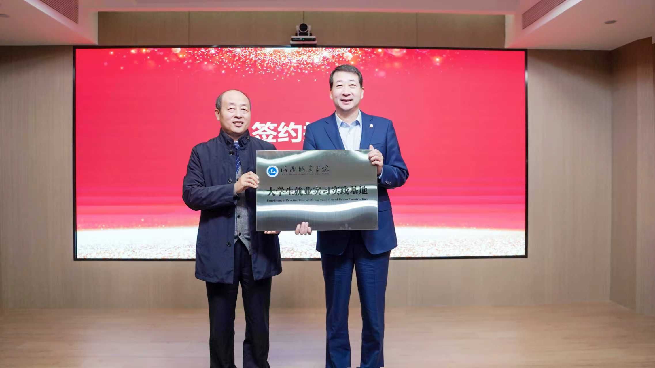 交流会上,双方正式签署了校企合作协议,河南城建学院能源学院授予河南联合化工能源集团有限公司“河南城建学院大学生就业实习实践基地”牌匾。