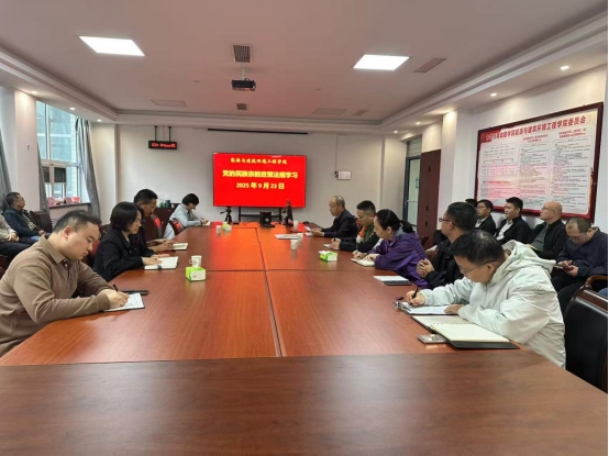 2025年9月23日,能源与建筑环境工程学院组织开展党的民族宗教政策法规集中学习活动。活动由学院党委书记赵兴涛主持,九三学社河南城建学院支社主委李奉翠、新入职教师、党员教师以及无党派和民主党派人士共同参与。