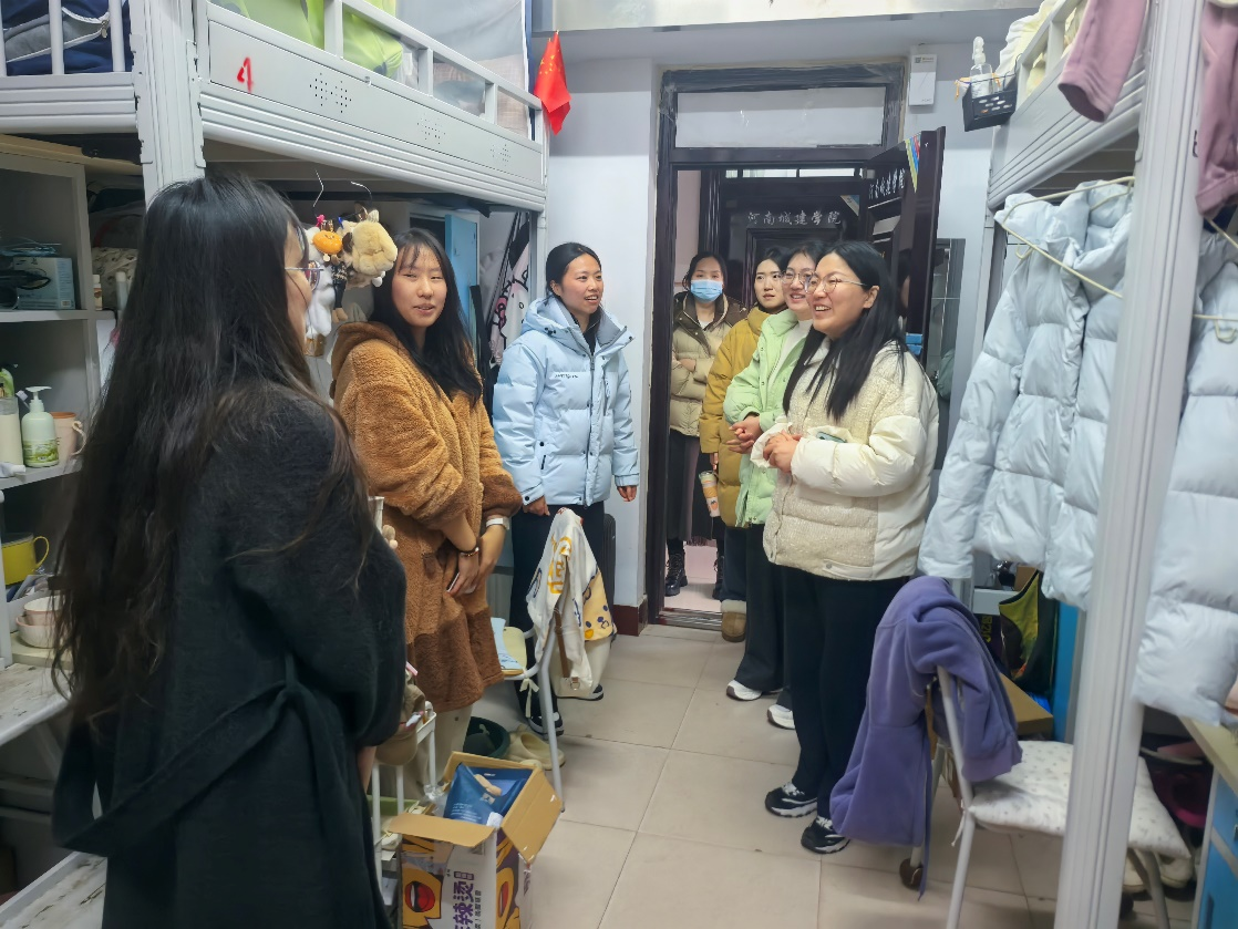 在传递温情的同时,安全检查也是此次走访的重点之一。老师们对宿舍的安全设施、用电规范以及卫生状况进行了细致的排查。叮嘱同学们严格遵守宿舍管理规定,杜绝使用违规电器,做到人走电断,切实增强安全防范意识。同时,老师们鼓励同学们养成良好的卫生习惯,共同维护整洁、舒适、和谐的生活环境,营造积极向上的宿舍文化,让宿舍真正成为温馨宜居的家园。